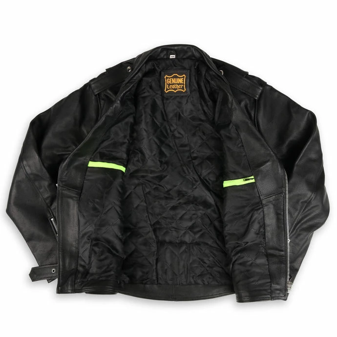 The jacket also has a leather strap with a metal buckle. Sleeves are nicely finished with metal zippers.