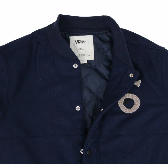 mens spring / fall jacket with lining VANS. Amenities: two side open pockets insulation end sleeves with buttons elastic band around the ends of the sleeves, hem and neck fastening stud front embroidery Composition: upper material – 46% wool, 41% polyester, 7% lycra, lining and padding – 100% polyester. Color: dark blue, black lining. Please note that the rates in the table are indicative and sizes can occur between different products and styles vary. (This is the approximate dimensions CIRCUIT figure that will motorcyclery the product.) Measured in cm. (men’s products VANS) Measurements of the product, measured on a flat surface. Dimensions are given in centimeters.