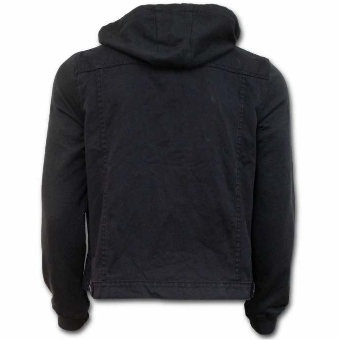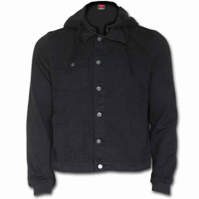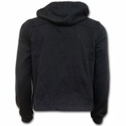 men’s spring / fall jacket brand SPIRAL. The jacket is made of denim material (vest), the sleeves are cotton – like sleeves of the sweatshirt. Effect hoodies vest underneath. Fastening is done via buttons, the jacket is without printing, hold hood with zip and can be unbuckle. Colour: Black. Material: 100% cotton. Brand SPIRAL. Please note that the dimensions stated in the table below are only approximate and that the actual sizes between different products and styles may vary. (These are approximate waistline dimensions of the person who’s going to wear this product – measured in cm)