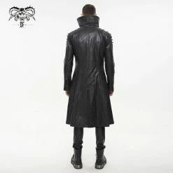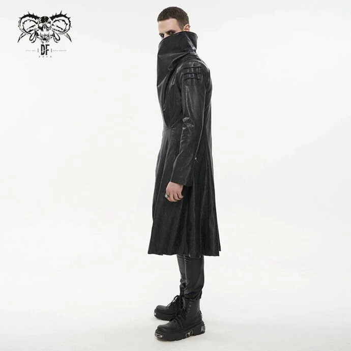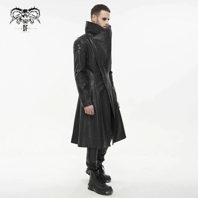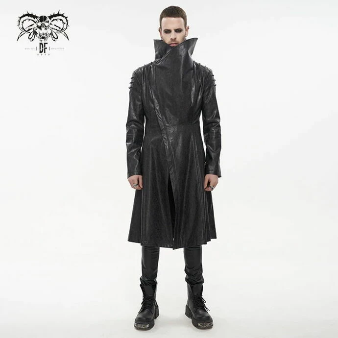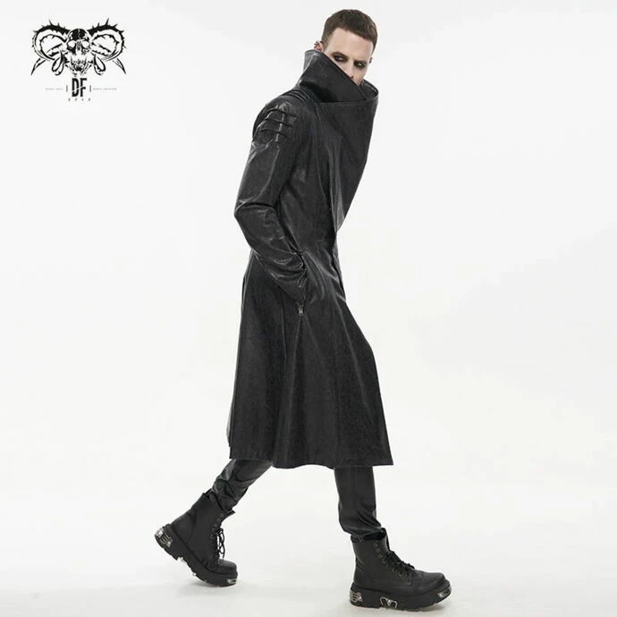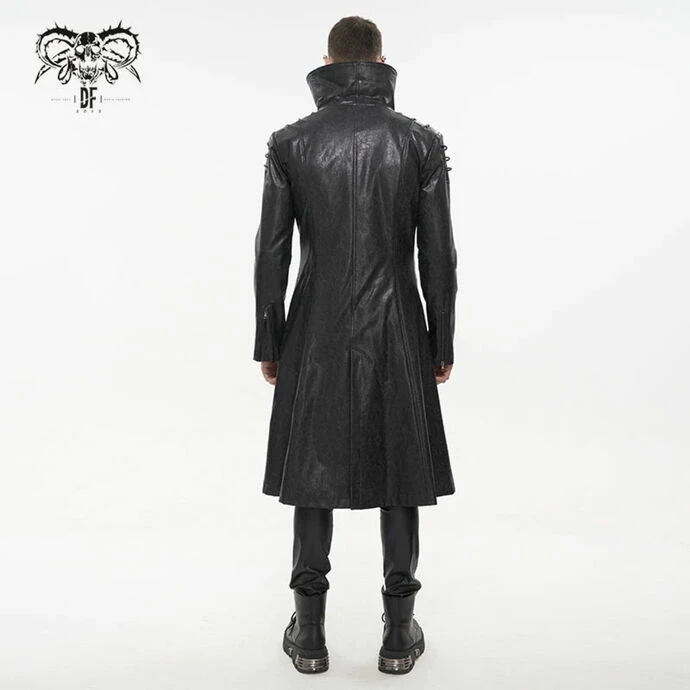 Men’s Coat DEVIL FASHION – Villain Blues Punk Faux Leather Trench Coat – Black