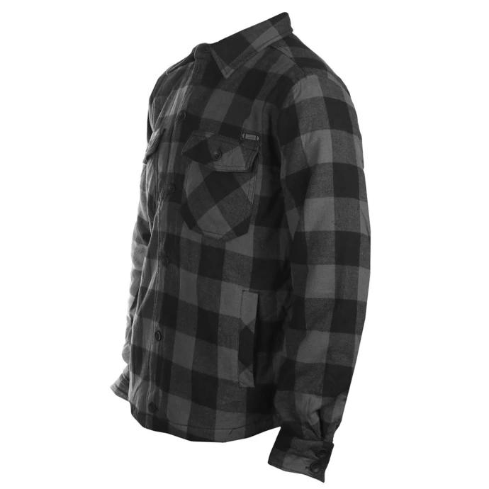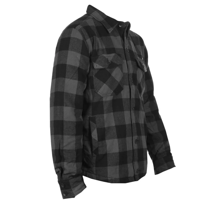 Features: Lightly insulated jacket – ideal for cooler, but not for rainy weatherButton closure Buttons on cuffs 2x side pocket 2x chest pocket covered with button down flapsJacket has a “casual” look. Composition : upper material – 100% cotton, lining and insulation – 100% polyester. Color: black, grey – check. Approx. dimensions in centimeters (CIRC. is 2x width)