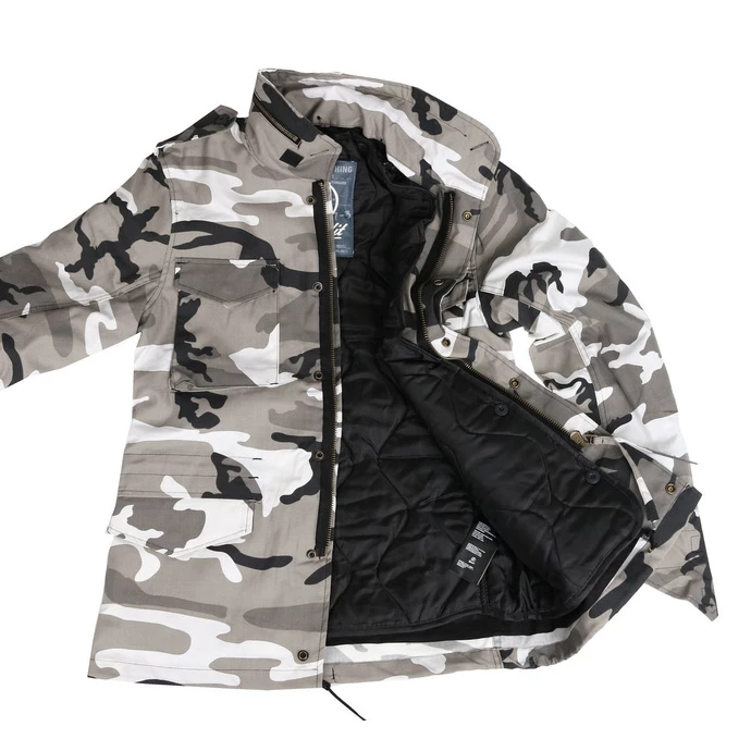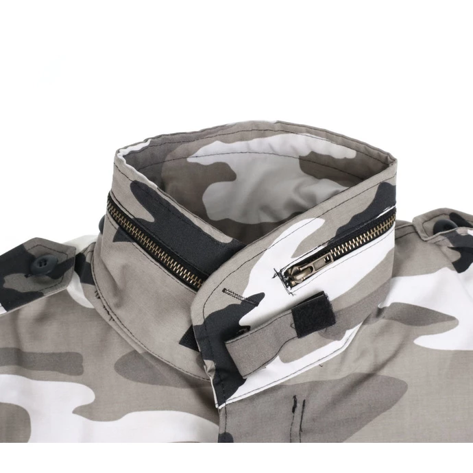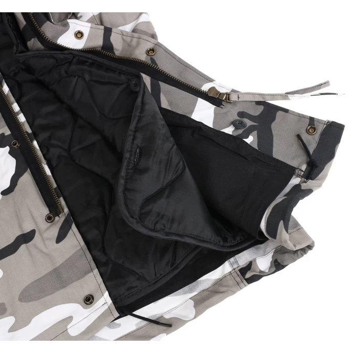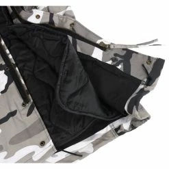 Classic fabric thermal military jacket by BRANDIT. The jacket can be used all year round! Both in summer without thermal insulation and in winter with possibility of thermal insulation. The cut of this jacket was an integral part of the field uniform of the US Armed Forces. Color: urban – light camouflage. Equipment: the jacket is fastened with a high-quality zipper, the zipper is covered with a lapel In the front, there are four large pockets covered by a collar with press stud fastening. The jacket has a fabric hood that can be easily hidden inside the neck collar. the jacket can be squeezed at the waist with a shoelace the lace is also in the lower edge of the jacket – it is easy to reduce the penetration of cold under the jacket The inner insulation is attached to the rest of the jacket with several buttons – this insulation can be easily removed and the upper part of the jacket can be worn separately. Composition: upper material: 80% polyester, 20% cotton, thin lining: 100% cotton, thermal insert: 100% polyester. Approx. dimensions in centimeters cca: (GIRTH is 2x width) Â