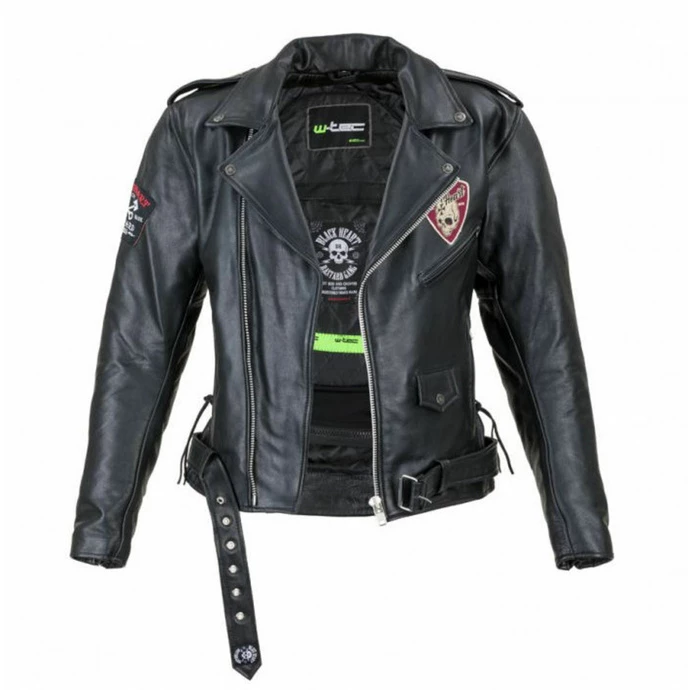 ATTENTION: DISCOUNT REASON: DAMAGE!The product is new and unused, this defect originated during production The damage is caused by external effects.The products may show the following defects:1.Leather wrinkles (leather jacket and pants)2.Initial rust on the metal components3.Stains on the materials4.Faded color5.Different colors of the shoes (colors of the left shoe may differ from the right)6.Slight deformation of the shape (wallet)Damage to the same products may vary slightly.(all pictures shown are for illustration purpose only) The W-TEC Black Heart Perfectis leather motorcycle jacket is a stylish jacket in the classic style of the so-called “curve”. With its unmissable style and original workmanship tuned by trendy patches, the W-TEC brand merged with the Czech progressive design brand Black Heart. At first glance, the jacket also impresses with its robust fastening on the adjusting cuff in the waist area. Thanks to that, it will fit you perfectly. Another significant element is the main fastening typical for this type of jacket, which is not located in its center. Of course, it is equipped with certified protectors in critical areas of the elbows and shoulders, which ensures the safety of the rider. The protectors are very easy to remove and use the jacket for casual wear.The jacket as such is made of soft buffalo leather and has an insulated lining on the inside. Practicality is supported by four front pockets for various small items and other equipment. Two more on the inside are added. Small details such as a stylish collar, decorative lacing on the sides or tasteful shoulder pads will also please. Elegant, original, if not really perfect look on a motorcycle, this is a leather motorcycle jacket W-TEC Black Heart Perfectis. Brand: BLACK HEART. Composition: buffalo outer leather (soft), 100% polyester lining. The final skin color can be slightly different from the pictures, this is due to the use of natural materials (leather) – each jacket is original. The table below shows the dimensions of the early product, measured on a flat surface.