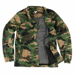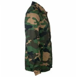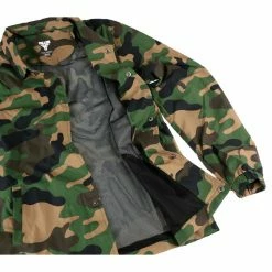 Stylish men’s jacket with mesh lining. Features: Two side pockets fastening of the jacket with press studs Elastic cuffs on the sleeves Mesh lining Composition: 100% polyester. Color: green camouflage. Approximate dimensions in cm (CIRCUMFERENCE is 2x width) Â
