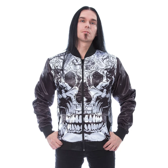 Stylish men’s spring/autumn jacket (“bomber”) Brand: HEARTLESS. Features: zip fastening two side pockets the jacket has a lining Elastic hem at the end of the sleeves and around the waist the surface of the jacket is glossy, satin like material. Color: black and white. Composition: 100% polyester. Approx. dimensions in centimeters (CIRC. is 2x width)