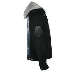 The jacket is made of comfortable denim, the hoodie is soft (like a sweatshirt).