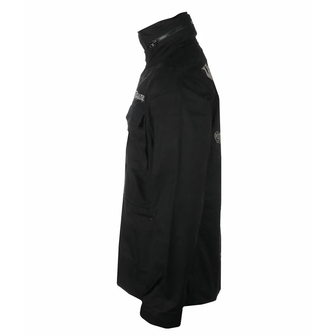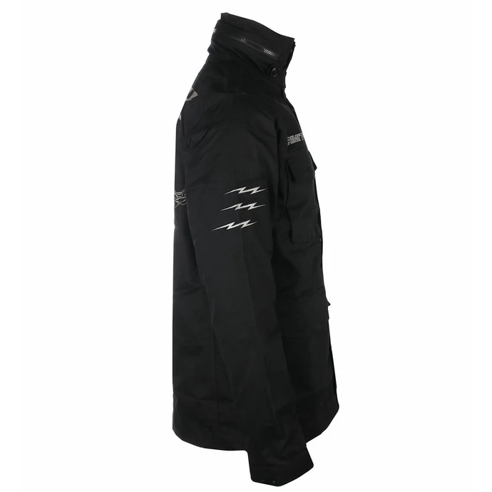 fastening of the jacket is solved with a zipper, which is covered with a press stud flap