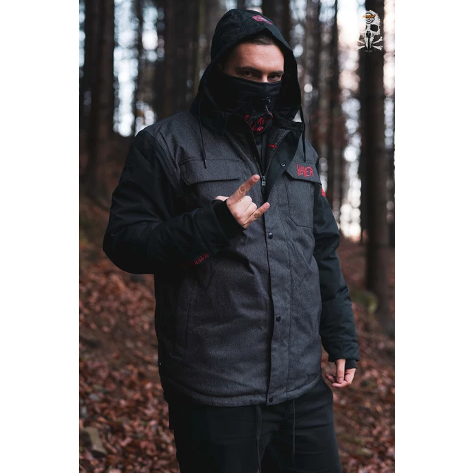 Due to this quality membrane the height of the water column is: 10.000 mm, breathability: 10.000 g / m² / 24h. The jacket is also slightly insulated: body – 80g / m², sleeves – 60g / m².Thanks to the cut, membrane and the high-quality design, the jacket can be worn year round, not only in extreme conditions in the mountains but also as a quality city jacket for everyday wear. Jacket equipment: High quality insulation with quality print and embroidery with the SLAYER motif Large print inside the jacket Internal snowcatcher – prevents snow and cold from entering the jacket Underarm ventilation Adjustable velcro fastening ends of sleeves, elastic cuffs with finger holes (prevents snow and cold from entering the sleeves) Two chest pockets covered with velcro flapsTwo side zippered pocketsInner mesh pocket for SNB glasses and extra one for cell phone. Possibility of adjusting the bottom hem by an inner drawstring Zipper fastening covered by a press stud flap Adjustable removable hood Color: black. JACKET IS IN STOCK FOR IMMEDIATE DELIVERY.