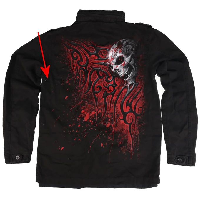 Hood concealed in the collar, three front pockets with buttoned flap.