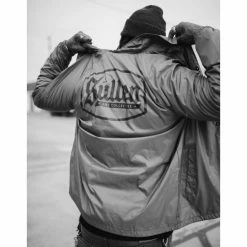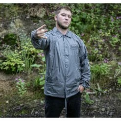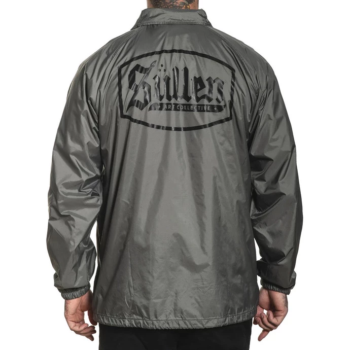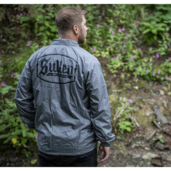 Men’s spring-autumn jacket by SULLEN. Composition: upper material – 100% nylon, lining – 100% polyester. Features: two side pockets fastening of the jacket with press studs thin lining the ends of the long sleeves have an elastic cuff the bottom hem can be pulled off with a string Color: grey, white lining. Approx. dimensions in centimeters (CIRC. is 2x width)