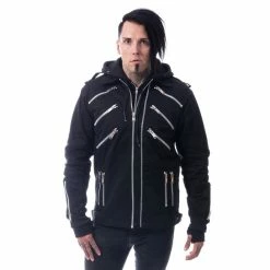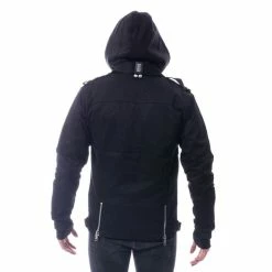 Stylish men’s year-round cloth jacket/ hoodie, by POIZEN INDUSTRIES. Contains 2 parts (pieces): jacket and hoodie, each piece can be worn separately – very versatile product! Ideal choice for a cold but not rainy weather (autumn / winter). Features: