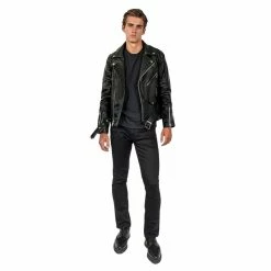 The Vegan Commando II is our most classic and recognizable artificial leather jacket. A grainy and textured leather substitute, this durable, fitted, and animal friendly jacket relaxes and conforms to your shape and breaks in perfectly. Engraved metal church key hangs from the inside pocket.