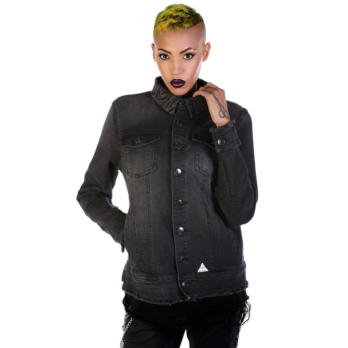 Unisex spring / fall denim jacket, brand: DISTURBIA. Jacket has casual, prewashed look with worn-out sleeves’ ends and no inner lining.Equipment: two breast pockets with buttoned flaps two side pockets fastening with buttons Brand: DISTURBIA. Color: gray – faded. Composition: 98% cotton, 2% elastin. Approx. dimensions in centimeters (girth is 2x width)