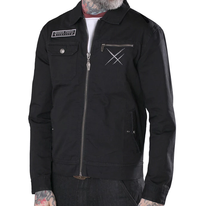 Men’s spring / fall jacket, brand: HYRAW Composition: 100% cotton Equipment: two side pockets covered with buttoned flaps two chest pockets fastening with zipper unlined Color: black Approx. dimensions in centimeters (GIRTH is 2x width)
