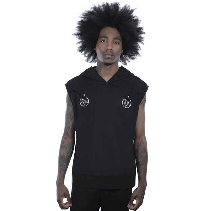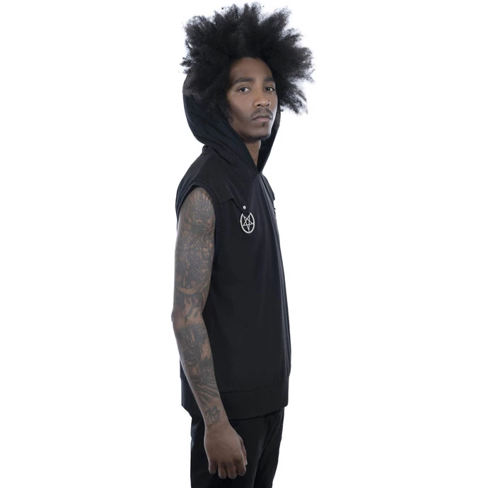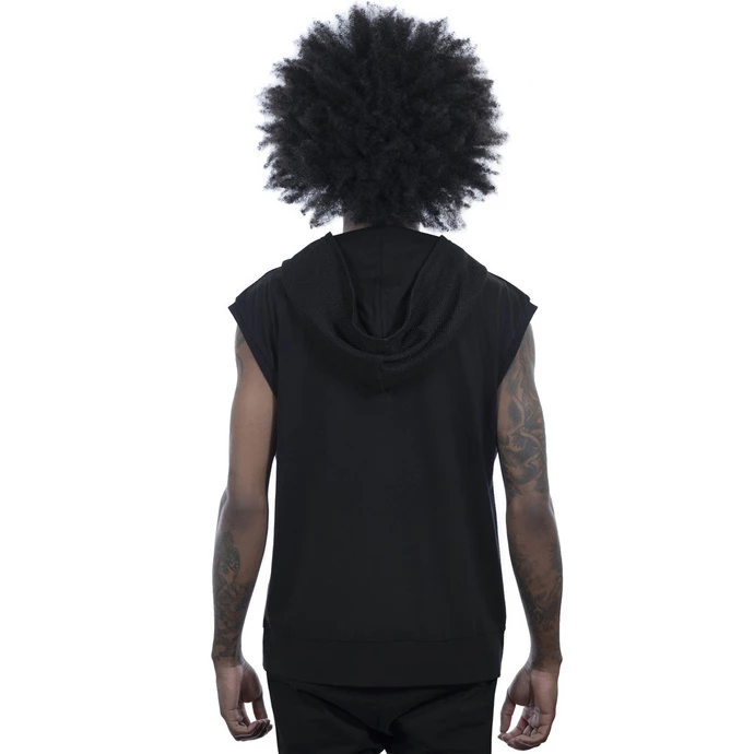Stylish men’s slightly elastic fabric vest with a hood. Brand: KILLSTAR. Color: black. Composition: 100% cotton. The model in the picture has 183 cm and wears size L. Please note that the dimensions stated in the table below are only approximate and that the actual sizes between different products and styles may vary. Approx. dimensions in centimeters (CIRC. is 2x width)