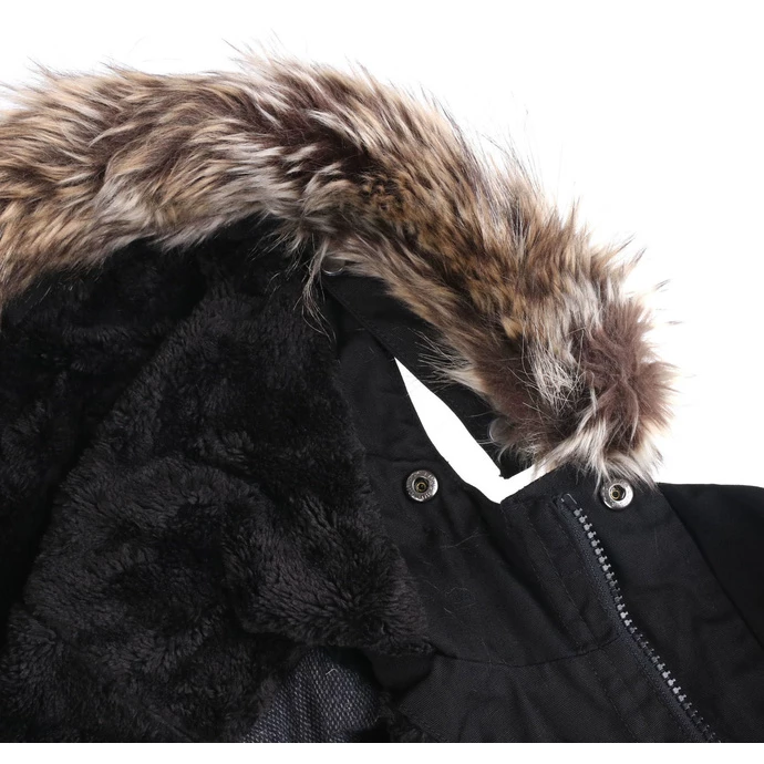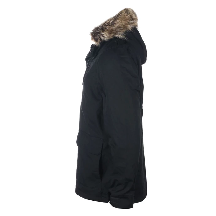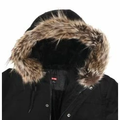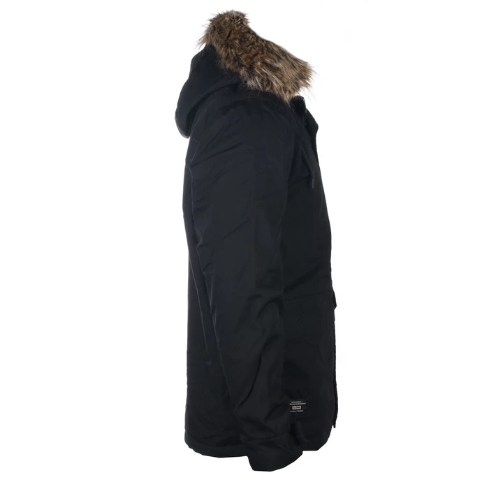 Stylish men’s cloth winter jacket with insulation, by GLOBE. Ideal for the city walking or to work. The fur on the hood rim is attached with press studs – can be easily detached. Composition: upper material – 80% polyester, 20% cotton, lining and insulation – 100% polyester. Color: black including lining. Features: Plenty pockets on the front Warm adjustable hood Zipper fastening covered with a press stud collarAdjustable waist thanks to inner drawstring closureApprox. dimensions in centimeters: (CIRC. is 2x width)