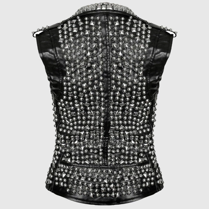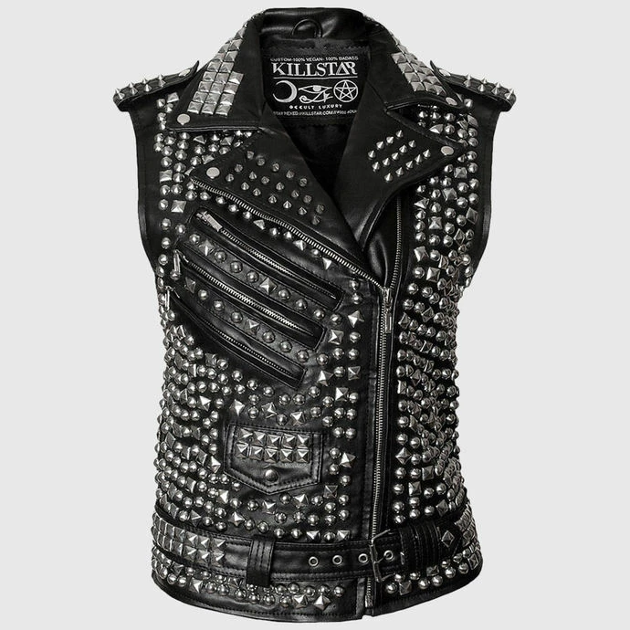 unisex (women’s/men’s) stylish vest by KILLSTAR decorated with plenty of metal spikes.