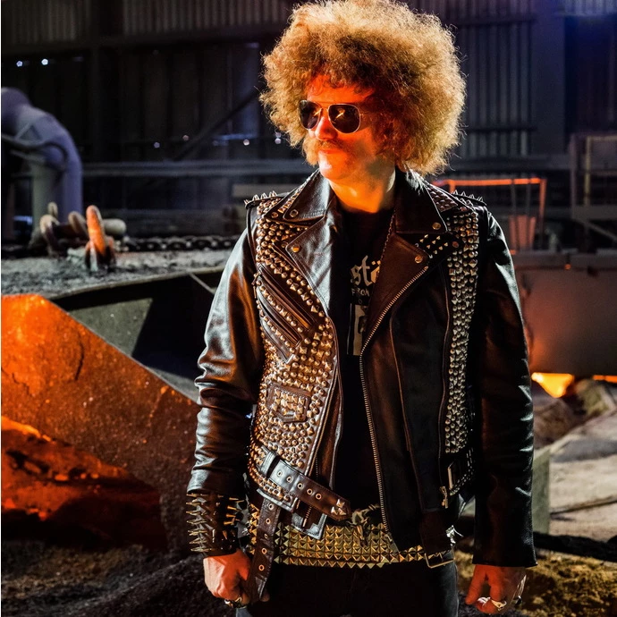 Zippers, buttons, spikes and other accessories are silver in colour and made of metal.
